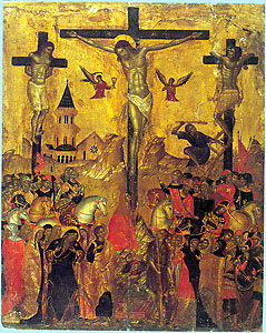Было зрелище, которое ныне мы созерцаем в воспоминании, в совершаемом церковном служении, в священном Изображении, предлежащем нашим взорам. Зрелищем был Сын Божий, сошедший с небес, вочеловечившийся для спасения человеков, обруганный, убитый человеками.